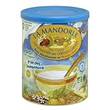 Lait d'amande Fleur o germ amande bio de La Mandorle est délicatement parfumé à la fleur d'oranger, « Fleur O'Germ Amande » est une excellente association de lait d'amande et de céréales germées avec lithothamne. Il est sans saccharose ajouté . Naturellement sans gluten ni lactose, « Fleur O'Germ Amande » permet d'apporter au quotidien des sucres lents, du Calcium et du Magnésium nécessaire aussi bien à votre équilibre minéral et la résistance physique. Il peut être utilisé à tout âge et également chez les jeunes enfants lors de l'introduction des 1ères farines. Conseils d'utilisation En bouillie crémeuse, à raison de 5 à 6 doses pour un bol de 250ml, ou en lait onctueux plus dilué, « Fleur O'Germ Amande » se déguste simplement dans de l'eau et idéalement avec un lait végétal pour bénéficier d'une synergie de nutriments exceptionnelle. Vous pouvez aussi l'utiliser mélangé avec un yaourt, du fromage blanc, une compote... « Un bol de 5 doses apporte 300 mg de calcium